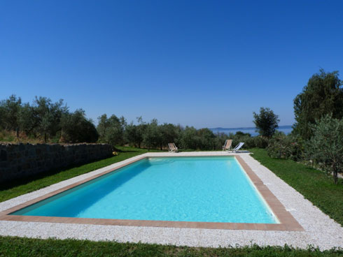 L’agriturismo dispone al momento di 4 appartamenti, tre si affacciano sul giardino principale con vista sul lago, un quarto nel cortile interno. Le cucine hanno angolo cottura con forno e frigo con congelatore. All’esterno gli appartamenti dispongono ciascuno di uno spazio attrezzato con tavolo, sedie barbecue per mangiare all’aperto, è inoltre a disposizione un vecchio forno a legna con camino per poter cuocere pizza o fare delle grigliate. A disposizione dei clienti c’è un ampio parcheggio privato. L’azienda agricola produce tutti prodotti genuini , olio d’oliva, verdura ed ortaggi che possono essere acquistati sul posto.