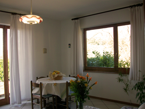 L’ appartamento può accogliere 2 o 4 persone ha l’ angolo cottura in condivisione col soggiorno, il soggiorno è provvisto di divano letto matrimoniale. La camera matrimoniale con bella vista sul bosco ,ampio bagno con vasca. L’appartamento si affaccia su un bel giardino con ampia vista sul lago.